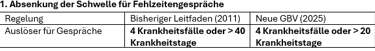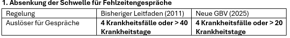 Die wesentlichste Veränderung betrifft das bisherige, vielen bekannte Kriterium für Fehlzeitengespräche: