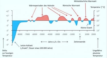 Es gab auch Temperatursprünge, wo in verhältnismäßig wenigen Jahren, die Temperatur um 10 bis 15°C gefallen ist. Was hat damals dazu geführt und könnte das heute auch geschehen? Ist es also ausgeschlossen, dass wir in Zukunft einen Temperatursturz erleben?