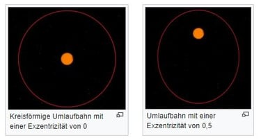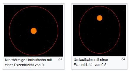Die Umlaufbahn der Erde um die Sonne ist eine Ellipse. Die Exzentrizität gibt an, wie stark die ellipsenförmige Umlaufbahn von einer kreisförmigen Bahn abweicht. Die Form der Umlaufbahn der Erde variiert von nahezu kreisförmig (geringe Exzentrizität von 0,0006) bis leicht elliptisch (hohe Exzentrizität von 0,058). Die gegenwärtige Exzentrizität beträgt 0,0167, was einer Variation der Einstrahlung um 6,9 Prozent entspricht. Bei minimal exzentrischer Erdbahn beträgt die Strahlungsänderung nur etwa 2 Prozent, im Maximum dagegen über 23 Prozent.