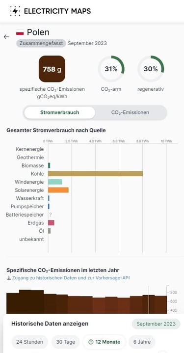 Es gibt bei uns in Europa nur ein einziges Land, was noch mehr CO2/kWh emittiert als wir und das ist Polen. Polen gewinnt gegenwärtig fast 80% seiner Energie aus Stein- und Braunkohle und emittiert durchschnittlich ca. 750g CO2/kWh. Dort macht das elektrische Fahren also momentan noch weniger Sinn, allerdings sind dort Atomkraftwerke im Bau und weitere in Planung.