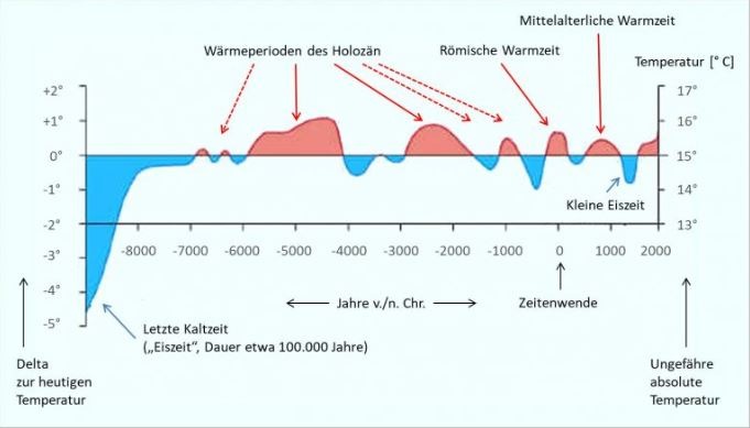 Das gegenwärtige Holozän, das seit fast 12.000 Jahren herrscht, ist eine Warmzeit innerhalb eines Eiszeitalters, ein sogenanntes Interglazial. In diesem Interglazial kam es zwischen den Jahren 900 und 1400 n.Chr. zur mittelalterlichen Warmzeit (die Wikinger betrieben Ackerbau auf Grönland). Es wird vermutet, dass dieses Klima global war und falls das stimmt, was hat dazu geführt? Wenn es damals global wärmer geworden ist, ohne dass der Mensch Wasserdampf und CO2 in die Atmosphäre geblasen hat, woran hat es denn gelegen und wäre das heute auch noch möglich? Wenn es früher andere Ursachen gegeben hat, inwiefern kann ausgeschlossen werden, dass diese Ursachen heute keine, oder nur eine untergeordnete Rolle spielen? Und was hat nach 1400 n.Chr. dazu geführt, dass es nicht zu einem „Teufelskreis“ kam, sondern zu einem Stopp der Rückkopplungseffekte? Was hat dazu geführt, dass es global kühler wurde und ist es ausgeschlossen, dass gleiche Faktoren auch in den nächsten Jahren und Jahrzehnten eine kühlende Rolle für das Weltklima spielen werden?