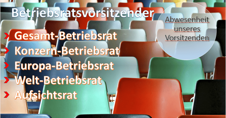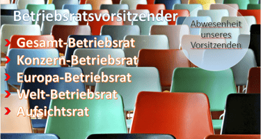 Wie Ihr sicherlich alle wisst, ist unser Betriebsratsvorsitzender, noch Mitglied im GBR, im KBR, im EBR, im WBR und im Aufsichtsrat. Dieses Engagement in allen Ehren, jedoch ist es für unseren Standortbetriebsrat schon problematisch. Es mussten in der Vergangenheit Betriebsausschüsse, Betriebsratssitzungen, ja sogar Betriebsversammlungen, kurzfristig verschoben werden, weil zentrale Termine vorgehen. Von Anfang Juli bis Ende Dezember dieses Jahres, 27 Tage Anwesenheit, hier am Standort, ist schon etwas dünne.